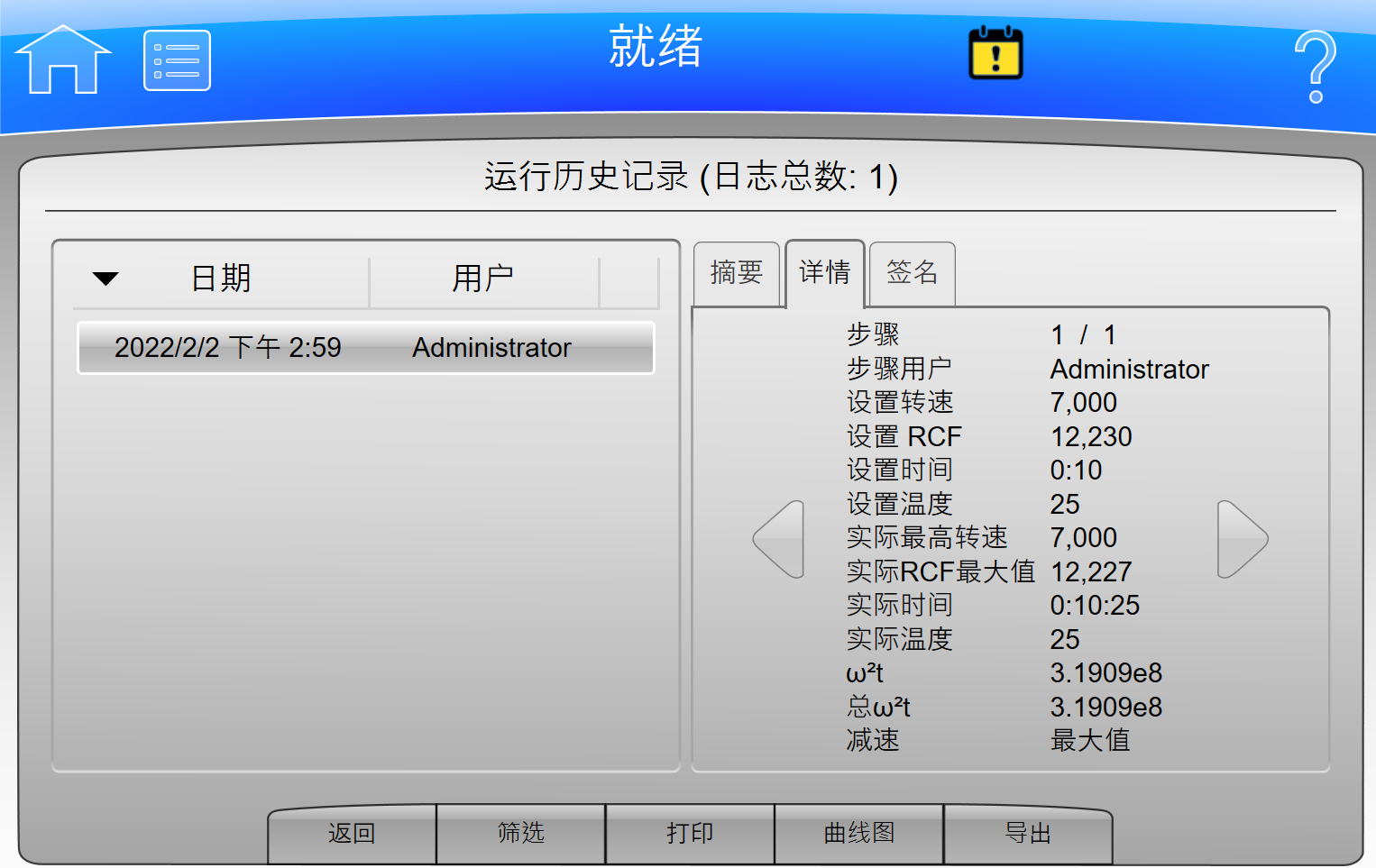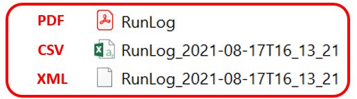 • 能够以PDF、XML和CSV文件格式导出详细的运行日志 (Run Log) ,包含设备信息、操作信息、运行曲线图以及签名等,并可以共享到网络存储设备或通过USB设备导出;