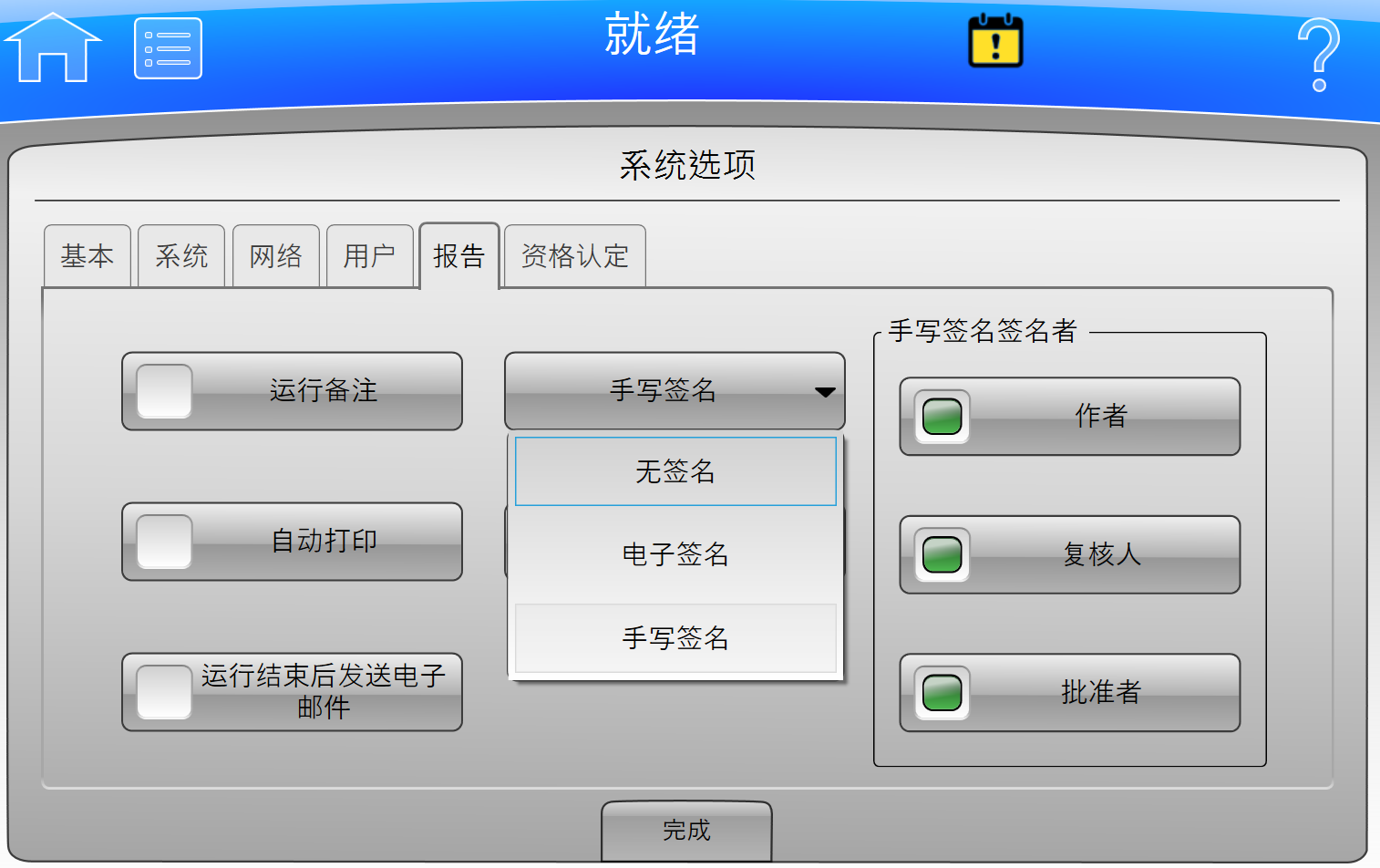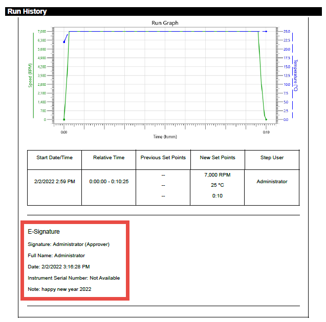 • 可选择在每个运行日志上自动添加电子化签名(基于用户权限生成),或仅生成PDF文档供手动签名;